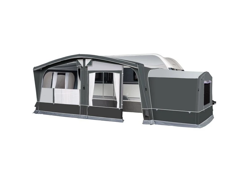 De derde generatie opblaasbare voortenten van Dorema. Biedt in zijn moderne ronde vorm, een prachtig beeld op de kampeerplek. De voortent is ongelooflijk stabiel, extreem snel op te bouwen en perfect afgestemd op de caravan, waardoor u met trots aan uw vakantie kan beginnen. Het EAF-systeem is geperfectioneerd bij de Octavia air. De ronde dakvorm maakt de Octavia air nog stabieler in weer en wind en is daardoor zeer geschikt voor kamperen aan de Europese kusten. Natuurlijk kunt u de Octavia air uitbreiden met een uitbouw en de voortentluifel Octavia. De standaard uitrusting laat nauwelijks iets te wensen over.