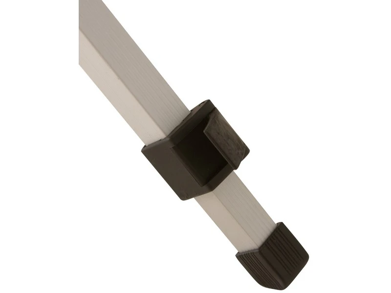 Het stevige aluminium frame is voorzien van een extra stabilisatie stand die zorgt voor extra stabiliteit. De poten zijn verstelbaar en de tafel wordt geleverd incl. draagtas.